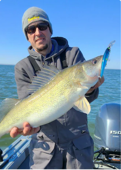 Note 2: Eric LaFramboise with a very nice early season Saginaw Bay walleye caught on this pattern