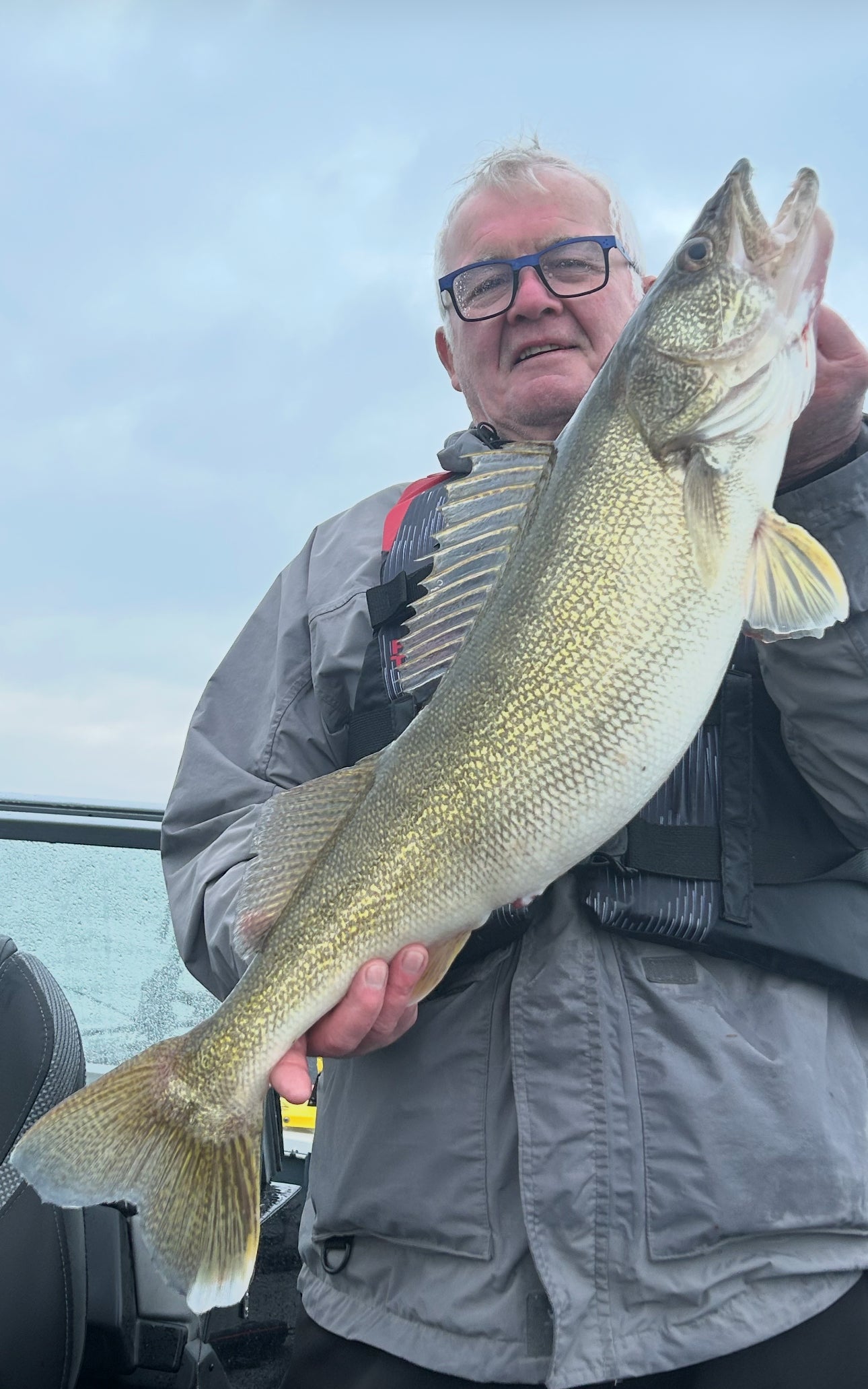 This bait has a metallic purple back, with a white belly and hot orange accents and the signature "double barrel" black spots on each side over a white base. This bait started out as a prototype that I made by mistake. When I painted the small purple spots on the sides of the original prototype, I over did it and the paint ran in a couple spots on each side. To cover up the mistake, I decided to add large black dots on each side and then hot orange dots next to them. I gave it to my cousin as a "throw-in" when he ordered some of my catalog baits. After the first day on Erie, he asked me if I had anymore of "that purple one with the black and orange dots on the side", because he couldn't keep it in the water. I told him that it was the only one that existed at that time and he said that I needed to make more, so I did. Since then, it has been a super-star each of the last 3 years. In fact, my uncle caught his "PB" walleye on it that he is having mounted. I don't add patterns to my catalog until I have proven that they work, and this one is definitely proven!