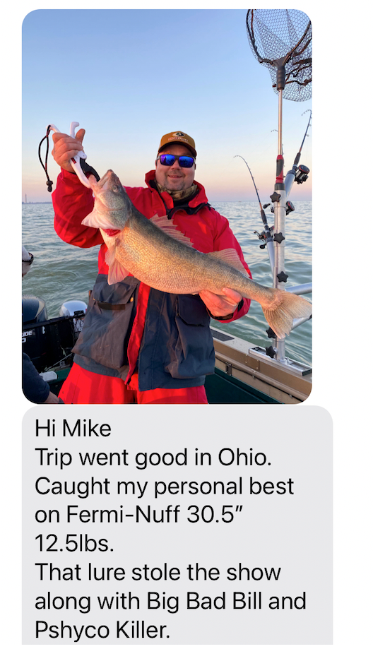 BTW, the name for this bait was provided by "Fiskr Hundr" from Michigan Sportsman's Forum, with an assist to "Plumbdaworld", as he suggested "Fermi Elegance" one post earlier. Thanks to everyone that provided names and feedback that helped create the finished product.