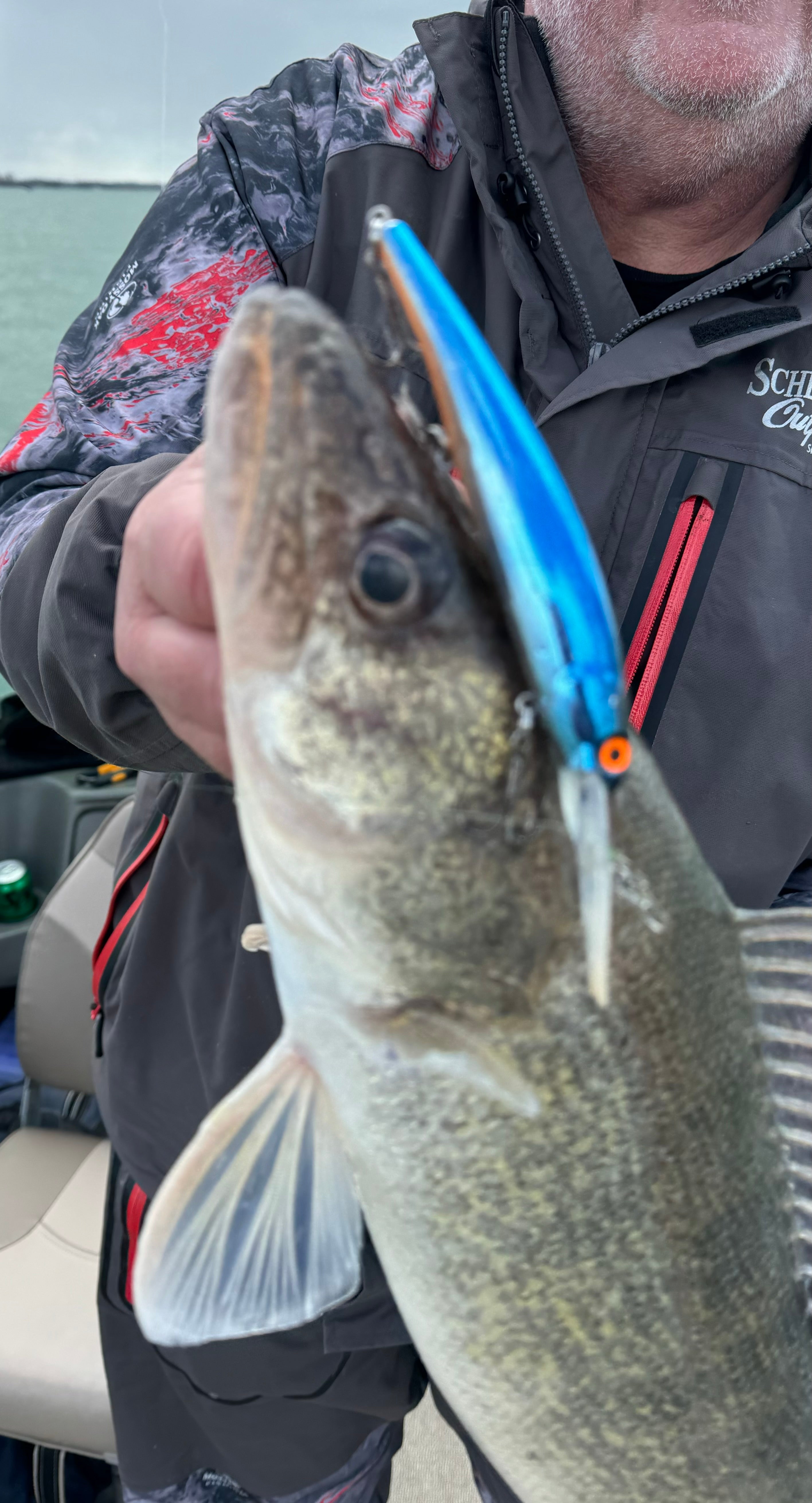 Bright blue back with a touch of hot orange underneath the tail section. A classic color combo for sunny-day walleyes. This has been a very consistent pattern for me over the past year. It is simple, yet simply amazing, especially when it's sunny!